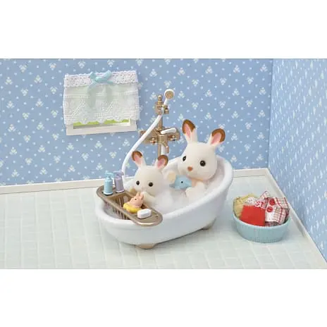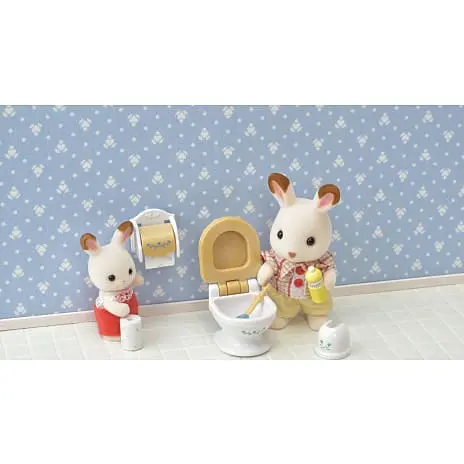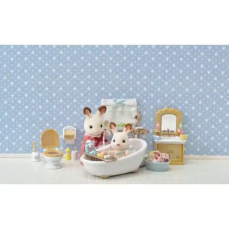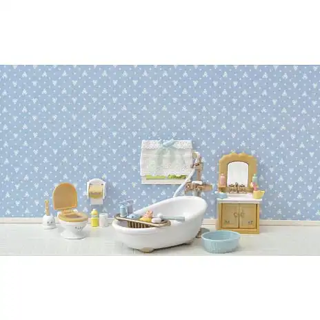 Badeværelsessættet er et sejt sæt møbler, der passer perfekt til dit Sylvanian Families-hus. Sættet leveres med bad, håndvask, bruser og toilet. Der følger også småt tilbehør som en vasketøjskurv, sæbe, flasker og børster med.