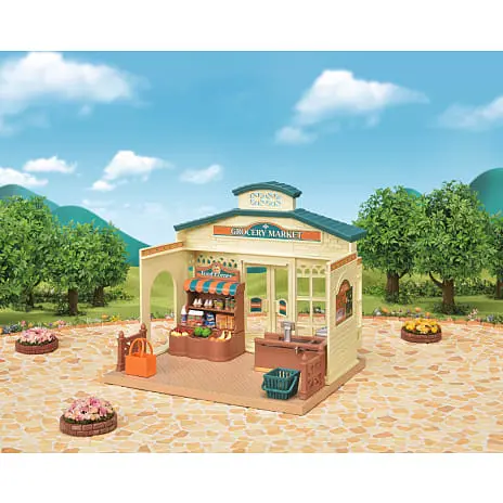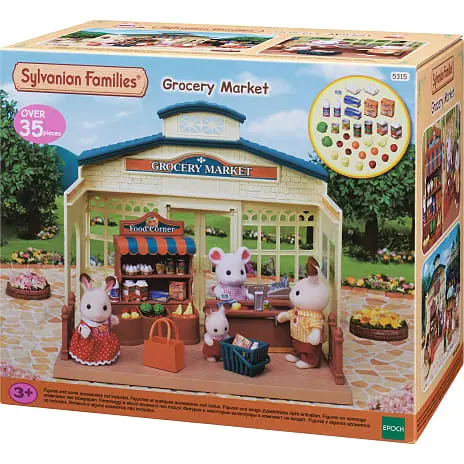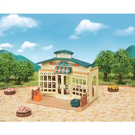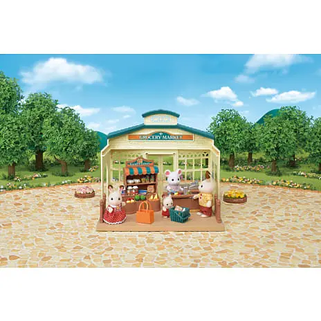 Sylvanian Families supermarkedet er det største supermarked i Sylvanian Village. Her kan man få alt, man skal bruge til daglig. På reolerne finder man frugt og grøntsager, æg, mælk og andre levnedsmidler. Figurerne kan bruge indkøbstasken eller indkøbskurven til at lægge deres varer i. Når figurerne har fundet de varer, de skal bruge, lægges de på båndet ved kassen. Båndet er bevægeligt og transporterer de indkøbte varer direkte ned i indkøbstasken. Supermarkedet kan placeres i forskellige positioner på bundpladen, så man kan vælge, om man har brug for mere plads i butikken eller foran butikken. Indgangsdørene er bevægelige. Sylvanian Families supermarkedet i over 35 dele indeholder bygningen, en reol, en kasse med transportbånd, 2 indkøbskurve og mange levnedsmidler. Egnet til børn fra 3 år.