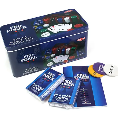 Indeholder alt hvad du behøver til en ægte pokeraften; pokerklæde, 200 poker chips, en dealer brik, big blind brik, small blind brik, poker chips holder, 2 kortspil