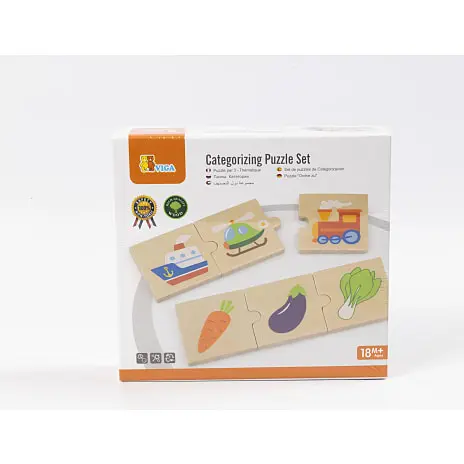 Sjovt og lærerigt puslespil i træ med forskellige små serier af brikker, der passer sammen. Styrker viden, finmotorik, iagttagelsesevne og koncentration.