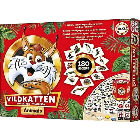 Er du vild med Vildkatten? Nu findes det populære spil også med dyremotiver. Det kan spilles af 2-8 spillere. Spillet går ud på at lede efter et dyr, eller en kategori af dyr: jungledyr, fugle etc. Den der finder dyret hurtigst, vinder runden. Der medfølger 180 kort, som fortæller hvad spillerne skal lede efter. Når der ikke er flere kort tilbage, vindes det spilleren med flest fundne dyr. Alder 4-7 år.